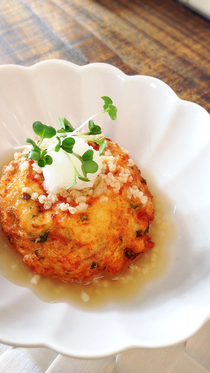 かき揚げは人参葉とごぼうとおじゃこで…