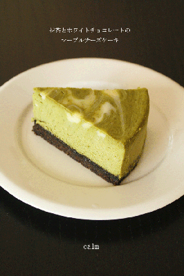 ベースは抹茶で白い部分はホワイトチョコレートのチーズ生地を