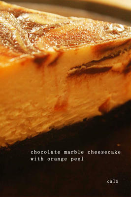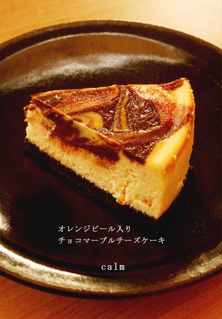 オレンジピール入りチョコマーブルチーズケーキです。