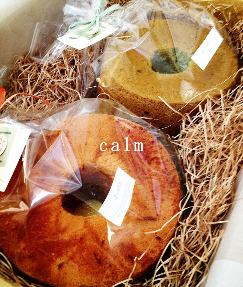 シフォンケーキ。手前がキャラメル、奥が抹茶です。