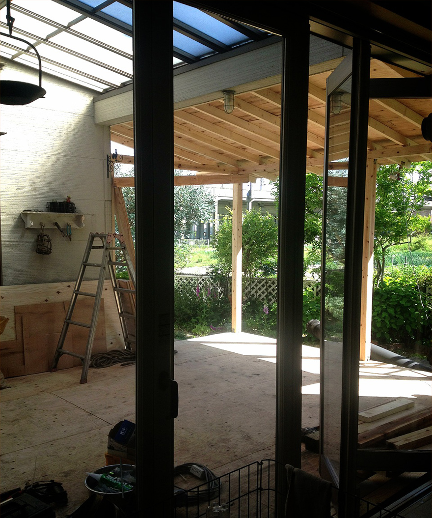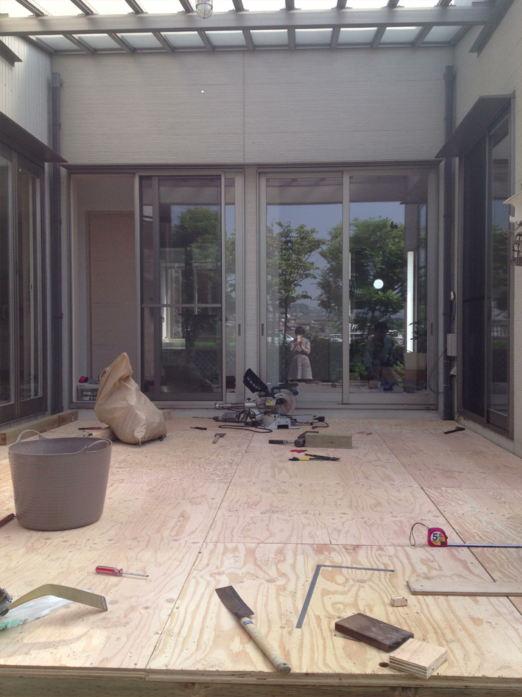 箱ができてからは私も参戦! 真夏のタイル貼りに、
