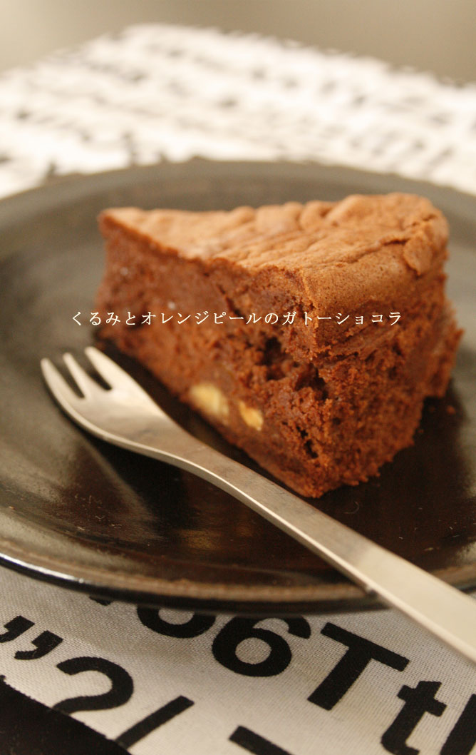 くるみとオレンジピールのガトーショコラです。