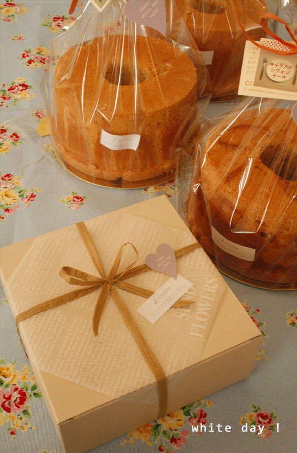 ホワイトデーにシフォンケーキを持っていくそうです。